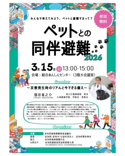 高知県動物愛護推進協議会主催のペット防災に関する講演会のお知らせです。